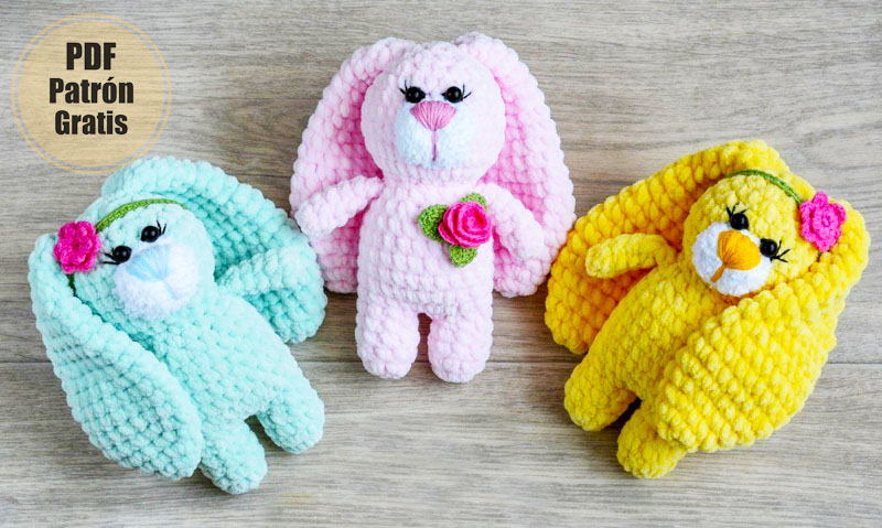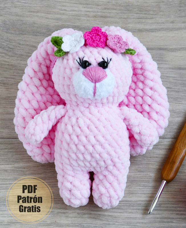 Patrón Gratis de Conejo de Peluche Rosa y Orejas Largas