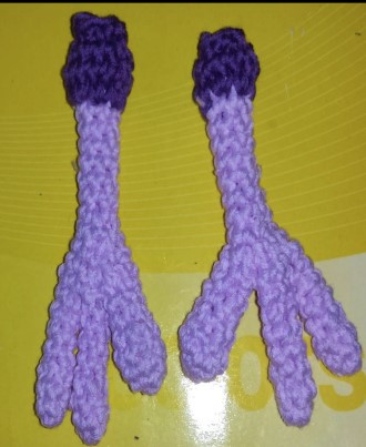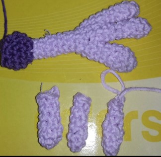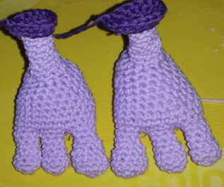 Ponemos dos alambres uno por cada pata hasta que llegue a la cabeza del dragón. Y las cosemos al cuerpo.