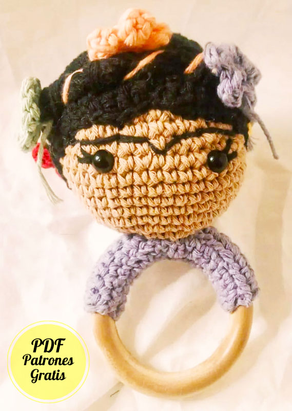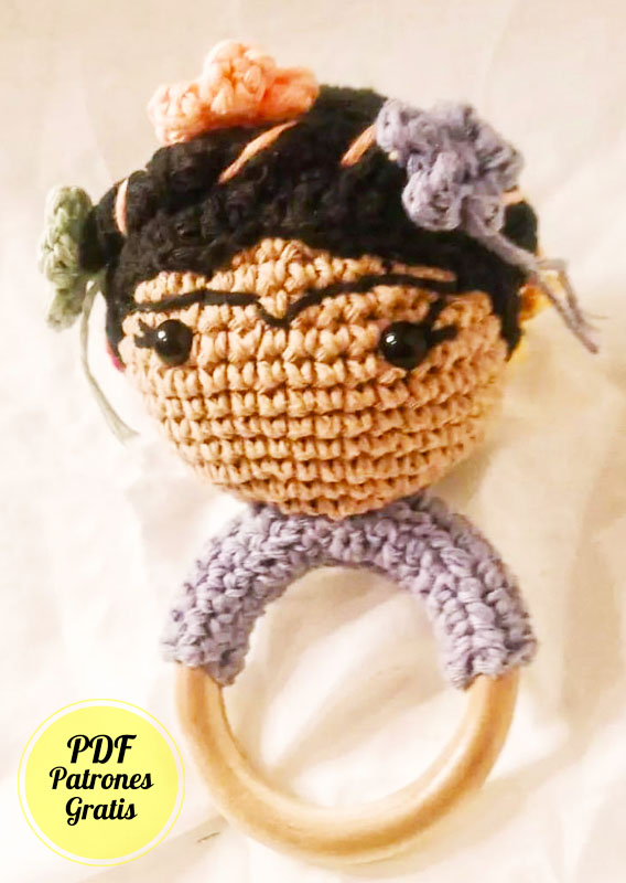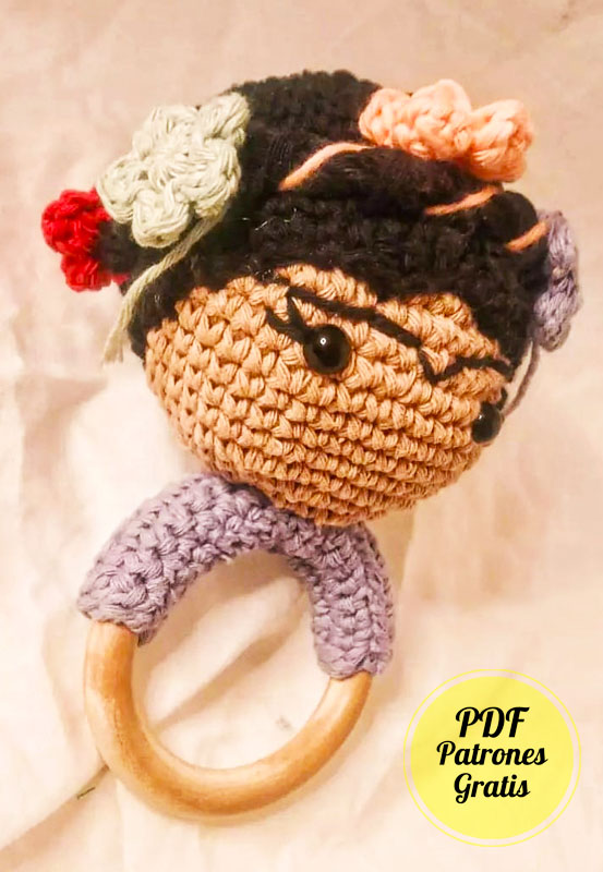 Frida Kahlo Sonajero Amigurumi PDF Patrón Gratis