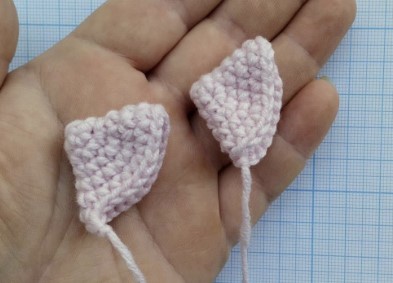 Coser las orejas comenzando desde la V 6 de la cabeza.