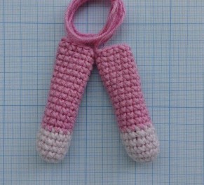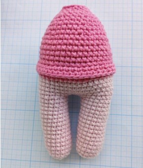 No rematar después de terminar la segunda pierna. Continuar tejiendo el cuerpo a partir de la segunda pierna.