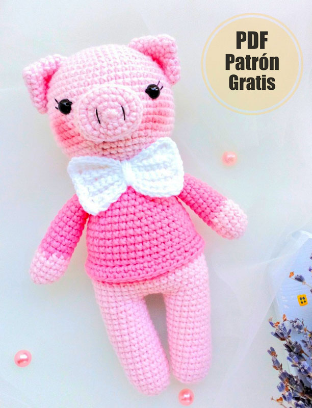 Cerdito con Pajarita Patrón Fácil y Hermoso