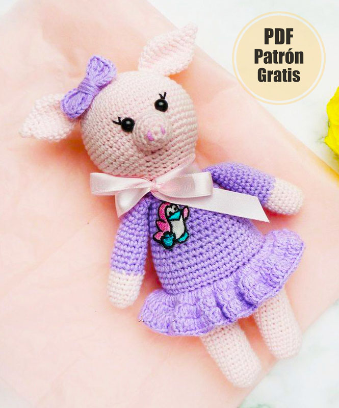 Lindo cerdo de ganchillo con un vestido de Anastasia Vorontsova. Patrón de cerdito amigurumi gratis y videotutorial paso a paso.